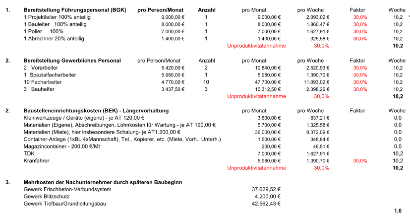 Dabei wird bewertet, ob dem Unternehmen zusätzliche Kosten oder Bauzeitverlängerungen entstanden sind oder ob eine Absicherung gegenüber möglichen Forderungen des Auftraggebers, beispielsweise Vertragsstrafen, erforderlich ist.